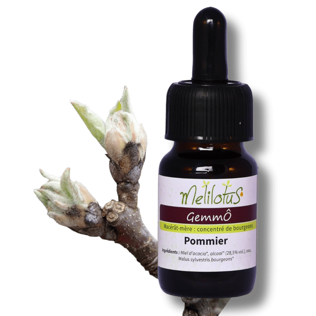 - Extrait de tissus végétaux en croissance, récoltés à l’état frais et directement mis en macération sur site puis dynamisés dans de l’alcool bio, du miel bio et de l’eau.