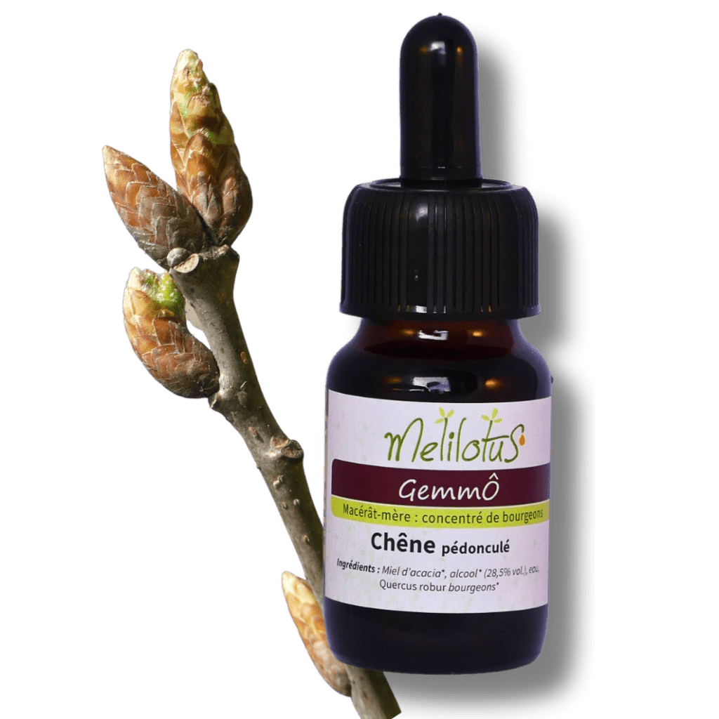 - Extrait de tissus végétaux en croissance, récoltés à l’état frais et directement mis en macération sur site puis dynamisés dans de l’alcool bio, du miel bio et de l’eau.